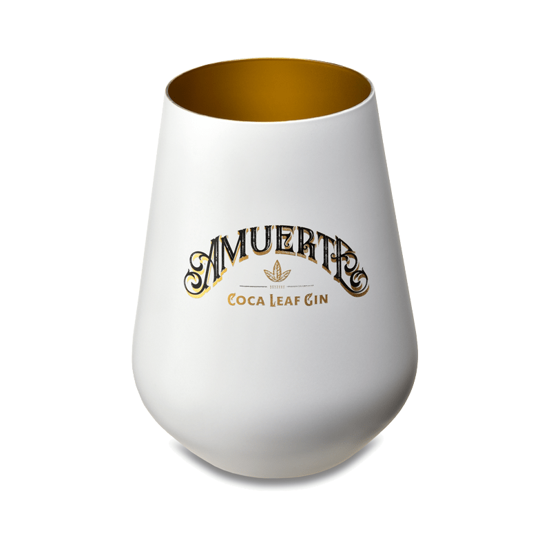 amuerteWeißes Glas, innen Gold, wiederverwendbar, mit dem Brandzeichen "amuerte coca leafGin".