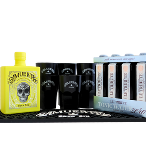 Un pack appositamente studiato per permetterti di realizzare i tuoi Gin Tonic da gustare in compagnia: la limited edition Amuerte Yellow, 7 bicchieri Amuerte in Policarbonato ideali per i tuoi party, 4x tonica Le Tribute Zero e il tappetino Amuerte.